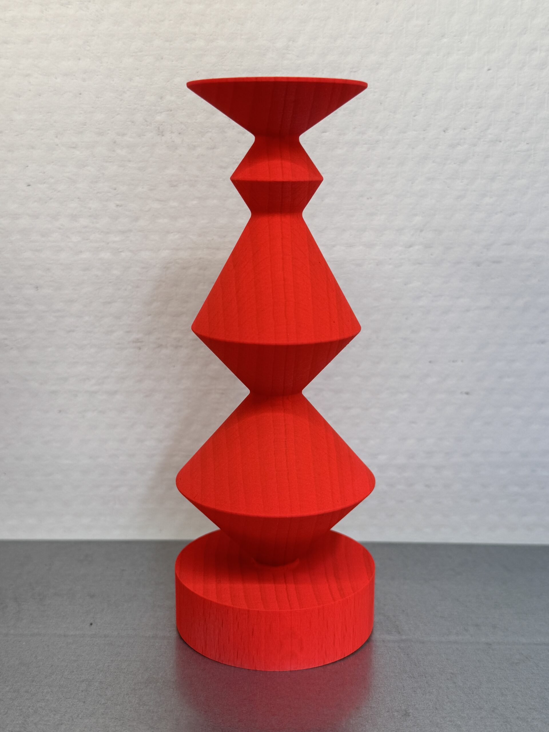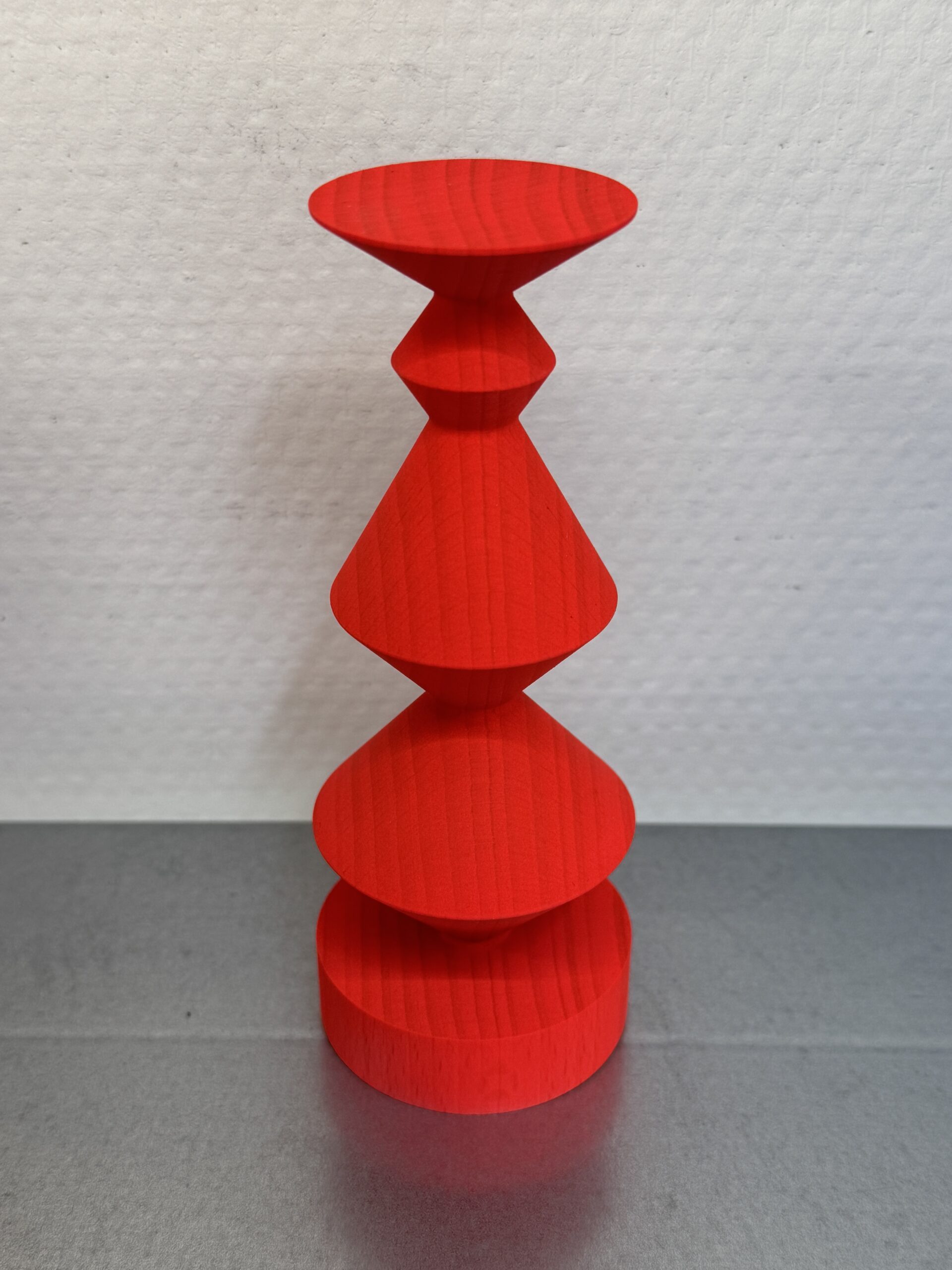 <--------------------------------------------------------------> INFORMACJE KOLEKCJA: Deco MODEL: Hourglass ROZMIAR: mini KOLOR: neon orange - widoczne słoje drewna MATERIAŁ: drewno bukowe WYMIARY: wysokość 15,1 cm, średnica podstawy 5,8 cm FILC: kolor filcu lub pianki może się różnić w zależności od egzemplarza